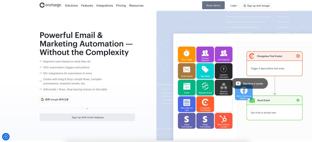 Encharge.io is a marketing automation platform designed specifically for SaaS companies and digital businesses. It simplifies email marketing and user journey automation with a robust visual flow builder and powerful segmentation capabilities.